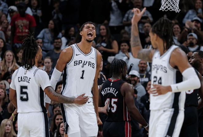 用马刺主教练米奇-约翰逊的话说,如果你去看他的跑动距离,看他多么频繁得掩护、顺下、冲筐,对手的节奏很快,比赛的对抗强度很大;在这种情况下,他依然没有体力透支,这种表现值得称赞。他能保持如此稳定且高效的表现出战40分钟,实在令人印象深刻。当然,人人都有失手的时候,最近一场和热火的比赛,文班亚马就在封堵阿德巴约进攻的过程中,惨遭隔扣。