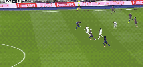 第43分钟,皇马卷土重来,维尼修斯下底传中,米利唐头球回做,贝林厄姆轻松补射,皇马再次取得领先。