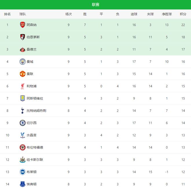 英超第九轮战罢,领头羊阿森纳继续狂飙,1-0险胜水晶宫强势领跑积分榜,埃泽打入全场唯一进球;曼城则是在客场0-1爆冷倒在维拉脚下,连胜就此终结;大黑马伯恩茅斯主场2-0完胜诺丁汉森林,霸占积分榜次席,另一头黑马桑德兰排在第三高位,现如今的英超争冠与争四,真的是乱成一锅粥啦!