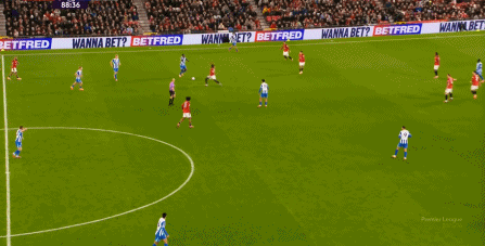 随后就是在这个半扇当中,布莱顿连续出现了传接上的运转问题,这自然会让主场作战的曼联看到进一步压上的机会: