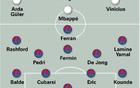 世体预测国家德比首发:费兰踢中锋,赫伊森搭档米利唐